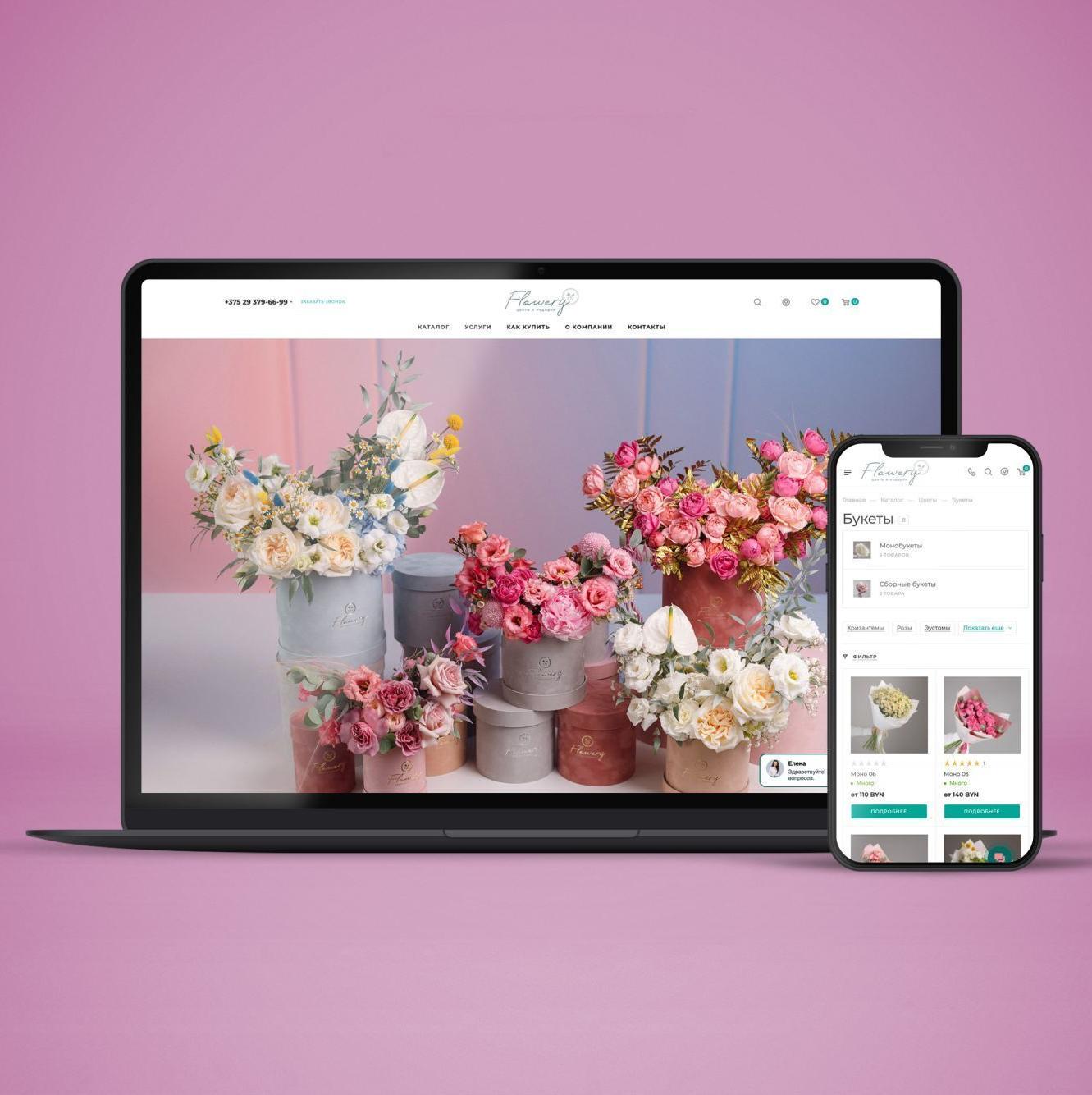 В кратчайшие сроки запустить сайт по продаже цветов и букетов. Дополнительно связать с CRM Битрикс24 и оказывать поддержку и консультационную помощь на всем процессе запуска.