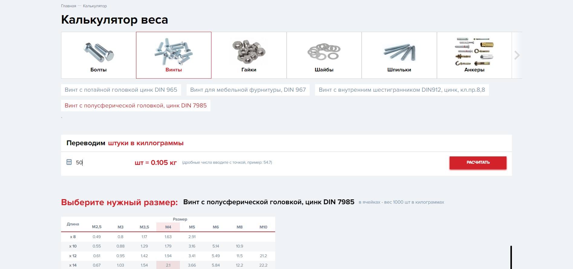 - калькулятор веса;