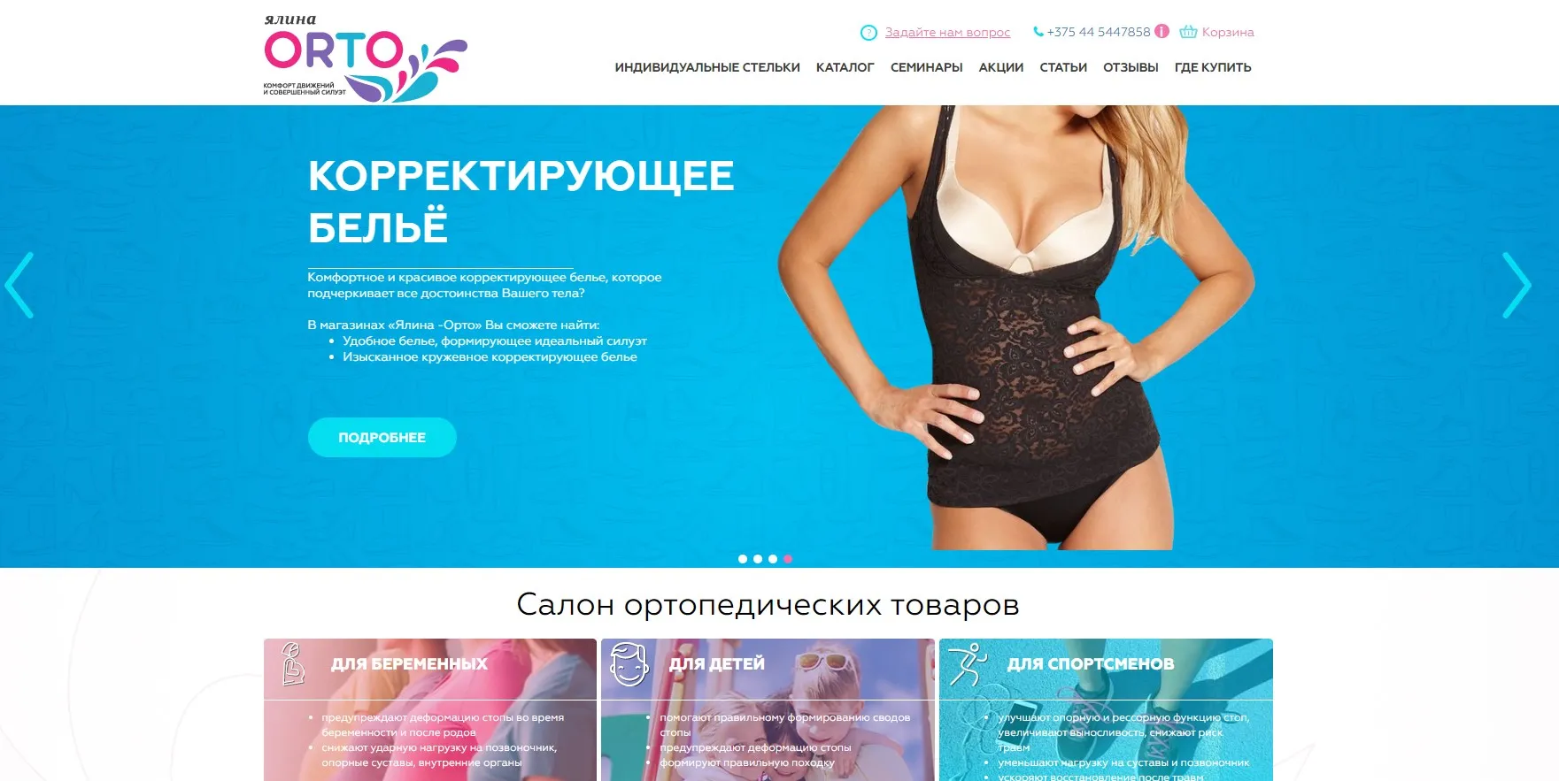 Корпоративный сайт сети мастерских по ремонту обуви "Ялина" по их новому направлению - производство ортопедической продукции